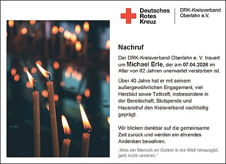 Das Deutsche Rote Kreuz rettet Menschen, hilft in Notlagen, bietet eine Gemeinschaft, steht den Armen und Bedürftigen bei und wacht über das humanitäre Völkerrecht – in Deutschland und in der ganzen Welt.