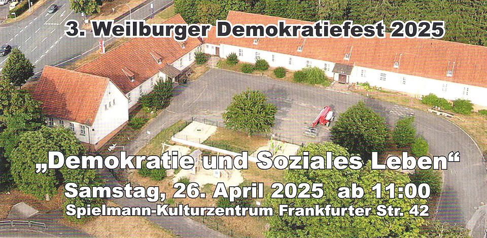 Am Samstag, den 26.04.2025 findet ab 11:00 Uhr das 3. Weilburger Demokratiefest statt.
