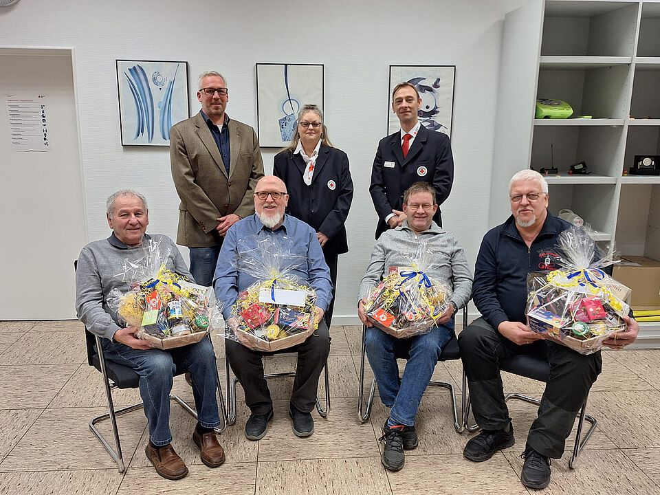 kleinen Feierstunde sehr langjährige Blutspender ehren, die im Jahr 2024 zum 125. bzw. zum 150. Blut gespendet und damit pro Blutspende 3 Leben gerettet haben.