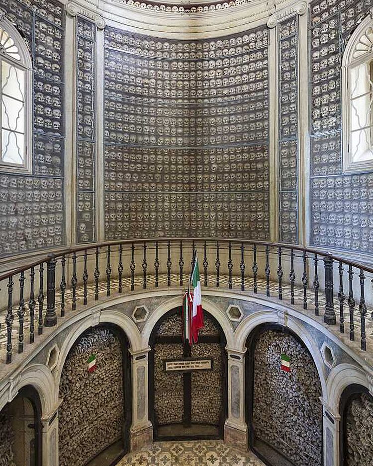 Von der Krypta bis zur Decke sind die Wände der Kapellen mit den Knochen und Schädeln der Gefallenen bedeckt.