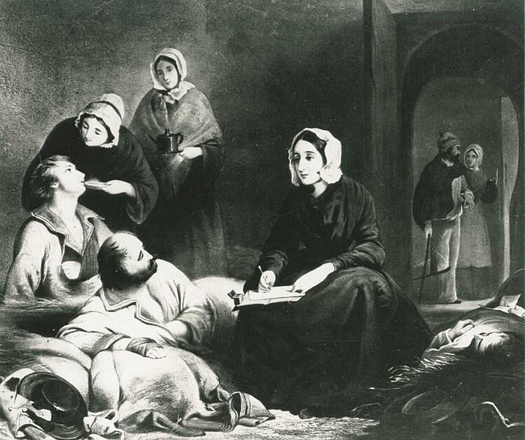 Die Britin Florence Nightingale brachte es zur wohl berühmtesten Krankenschwester aller Zeiten. Sie hatte bei Düsseldorf eine Schwesternschule besucht, Medikamentenkunde und Wundpflege gelernt. Während des Krimkriegs hatte sie im Militärlazarett von Skutari (Shkodra im heutigen Albanien) verwundeten und oft auch an Cholera erkrankten Soldaten beigestanden. Da sie ihre nächtlichen Runden durch die Säle stets mit einer Laterne drehte, ging sie als "die Lady mit der Lampe" in die Geschichte ein.