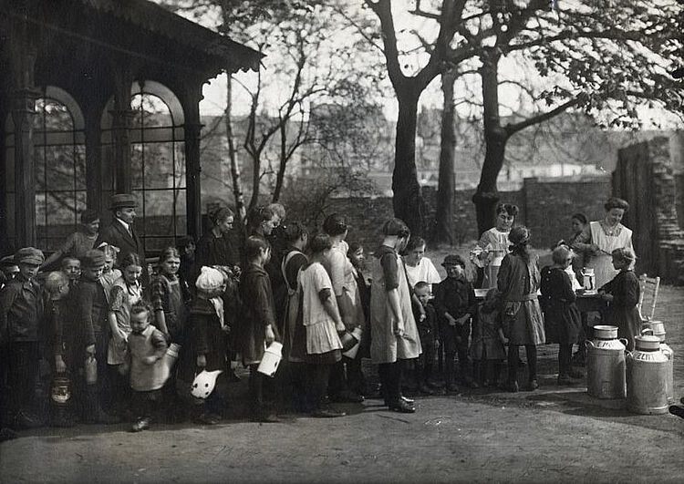 Bereits während des Ersten Weltkrieges wurde die Notenpresse im Deutschen Reich massiv angeworfen. Nach dem Krieg kommt es zu einer schwindelerregenden Hyperinflation, der Geldwert stürzt ins Bodenlose. Eine Tasse Kaffee kostet im Jahr 1923 7.000 Mark, eine Theaterkarte sogar eine Milliarde. Pfarrer sammeln ihre Kollekte mit Waschkörben ein, Läden richten ihre Öffnungszeiten nach der Bekanntgabe der Wechselkurse. Während die Preise immer mehr steigen, sinkt der Reallohn gleichzeitig auf vierzig Prozent des Vorkriegsniveaus.