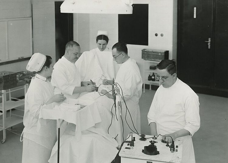 Ärzten jüdischer Herkunft wird nun gekündigt. Richard Hessberg beispielsweise, über zwanzig Jahre hinweg Chef einer Augenklinik in Essen, muss schon Ende 1933 gehen, seine „Schule für fast blinde Kinder“ wird abgewickelt. Emil Heymann kann noch bis Anfang 1936 am Berliner Augusta-Hospital arbeiten, zu dessen Ruf er als Pionier der Hirnchirurgie beigetragen hat. Doch fachliche Qualifikation zählt nun nichts mehr, es geht allein nach Rasse und Parteibuch. Pionierinnen der Sozialarbeit wie Adele Schreiber und Alice Salomon, die dem Roten Kreuz in den zwanziger Jahren neue Impulse gaben, müssen nach Amerika emigrieren.