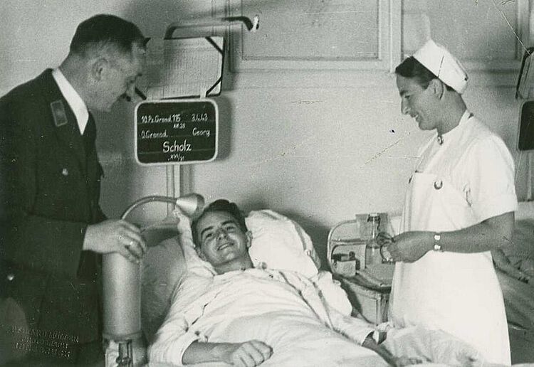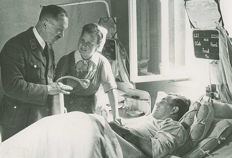 Im Zweiten Weltkrieg denkt sich das DRK-Präsidium einen besonderen Service für verwundete Soldaten aus. Sie dürfen eine Schallplatte besprechen, die dann als „sprechender Feldpostbrief“ an ihre Angehörigen in der Heimat übersandt wird.