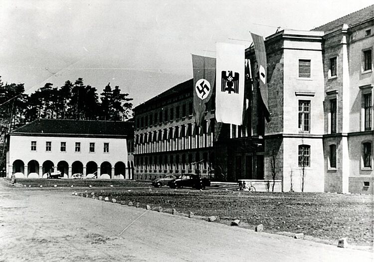 Mit dem Präsidialgebäude in Potsdam-Babelsberg bezieht die DRK-Führung einen repräsentativen Verwaltungsbau im Stil der Zeit. Doch die Tage des NS-Regimes sind gezählt.