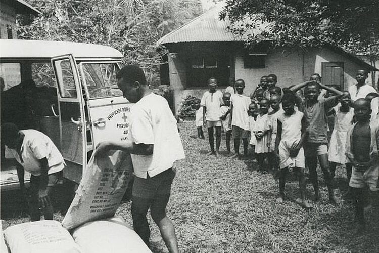Im August und September 1968 fliegen drei DRK-Teams mit insgesamt rund dreißig Helfern nach Nigeria, vorwiegend Ärzte, Krankenpfleger, Techniker und Fahrer. Viele haben schon schwere Hilfseinsätze hinter sich, die Flutkatastrophe von Hamburg etwa liegt nur wenige Jahre zurück. Doch die Bedingungen in dem westafrikanischen Land sind mit Europa nicht vergleichbar.