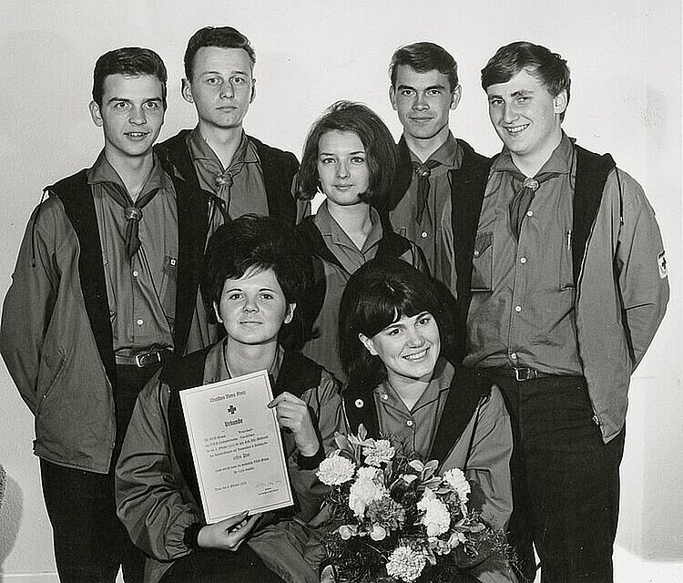 Das Jugendrotkreuz entstand in den zwanziger Jahren als Teil der internationalen Rotkreuzbewegung. Im Dritten Reich wurde es dann jedoch in Deutschland verboten. Doch seit den fünfziger Jahren formierte es sich in der Bundesrepublik mit großem Erfolg neu. Fand die Jugendarbeit in der Weimarer Republik hauptsächlich in Schulen und Sanitätskolonnen statt, so entwickelt sich die Bewegung nach dem Zweiten Weltkrieg zunehmend zu einem außerschulischen Jugendverband, der mit seinen Ferienfreizeiten, Völkerverständigungsprogrammen und Erste-Hilfe-Wettbewerben eine immense Anziehungskraft ausübt. 1965 erreicht die Mitgliederzahl mit ca. 38.500 ihren vorläufigen Höhepunkt. Anfang der siebziger Jahre setzen sich die Jugendrotkreuzler im Gefolge der Studentenbewegung kritisch mit ihrem Verband auseinander. Sie fordern mit Erfolg Bildungsreformen, Mitbestimmung und mehr demokratische Teilhabe.