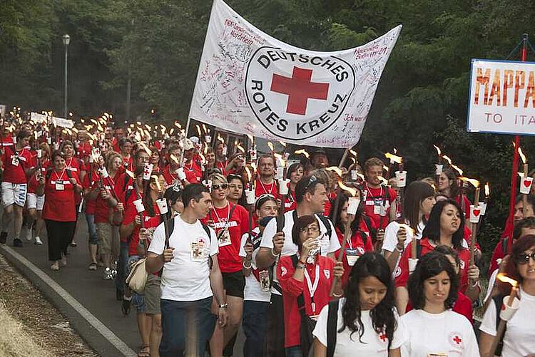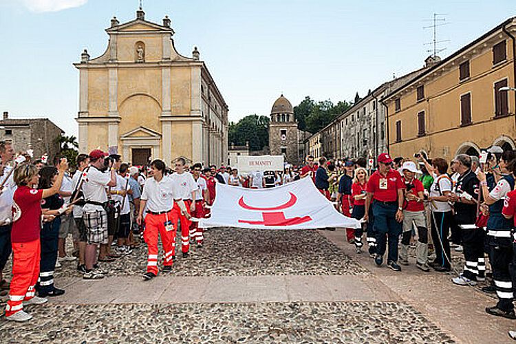 Zu Ehren von Henry Dunant und im Gedenken an eine grausame Schlacht ziehen tausende Rotkreuz-Freunde mit Fackeln durch die Straßen von Solferino.